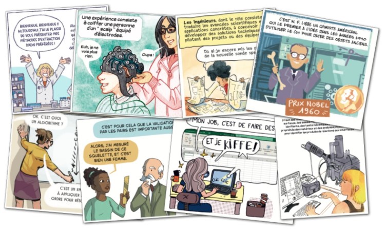 Je me suis cette fois associé avec Camille Mertz, qui s’est brillamment chargée de dessiner et mettre en couleur les 14 pages de notre article. Je me suis consacré aux recherches et au scénario, et ai partagé avec elle l’écriture de plusieurs gags et la rencontre avec les chercheurs.